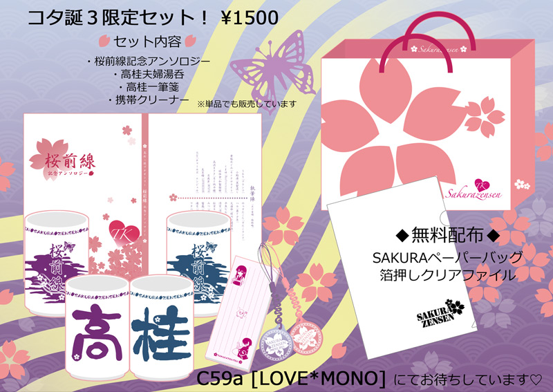桜前線記念アンソロジーはもちろん、懐かしの高桂夫婦湯呑、一筆箋なども出品予定!